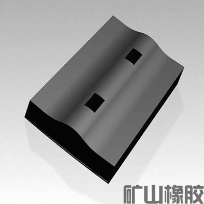 單一波峰的仿錳鋼橡膠襯板,為橡膠+骨架式設計,目前開發有3.2m直徑球磨機使用,外形與錳鋼襯板雷同,安裝方式也與錳鋼襯板相似,要求預設定位孔,孔距精確,否則影響安裝。這種襯板受安裝方式影響,避免不了安裝縫隙的存在,最好進行錯位安裝設計,否則一旦形成環流容易對筒體造成損傷。